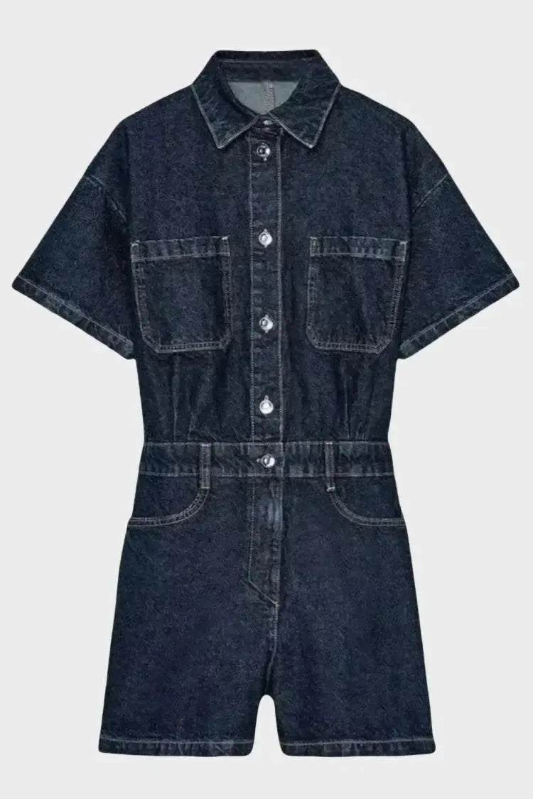 Džínové overalové šortky jsou hravou kombinací struktury a spontaneity – ideální na dny, kdy se chcete obléknout rychle a přesto vypadat stylově. Model inspirovaný vintage pracovním oblečením v kombinaci s moderním střihem dělá z tohoto kousku bezstarostný, ale přesto upravený outfit. Zapínání na knoflíky vpředu, jasný límec a design zvýrazňující pas vytvářejí lichotivou siluetu, která si zachovává ležérní vzhled. Pevný denim a krátký rukáv dělají z tohoto jednoho kusu oblečení ideální volbu na víkendové procházky i kreativní chvíle. Pohodlné, nadčasové a navržené pro každodenní nošení.