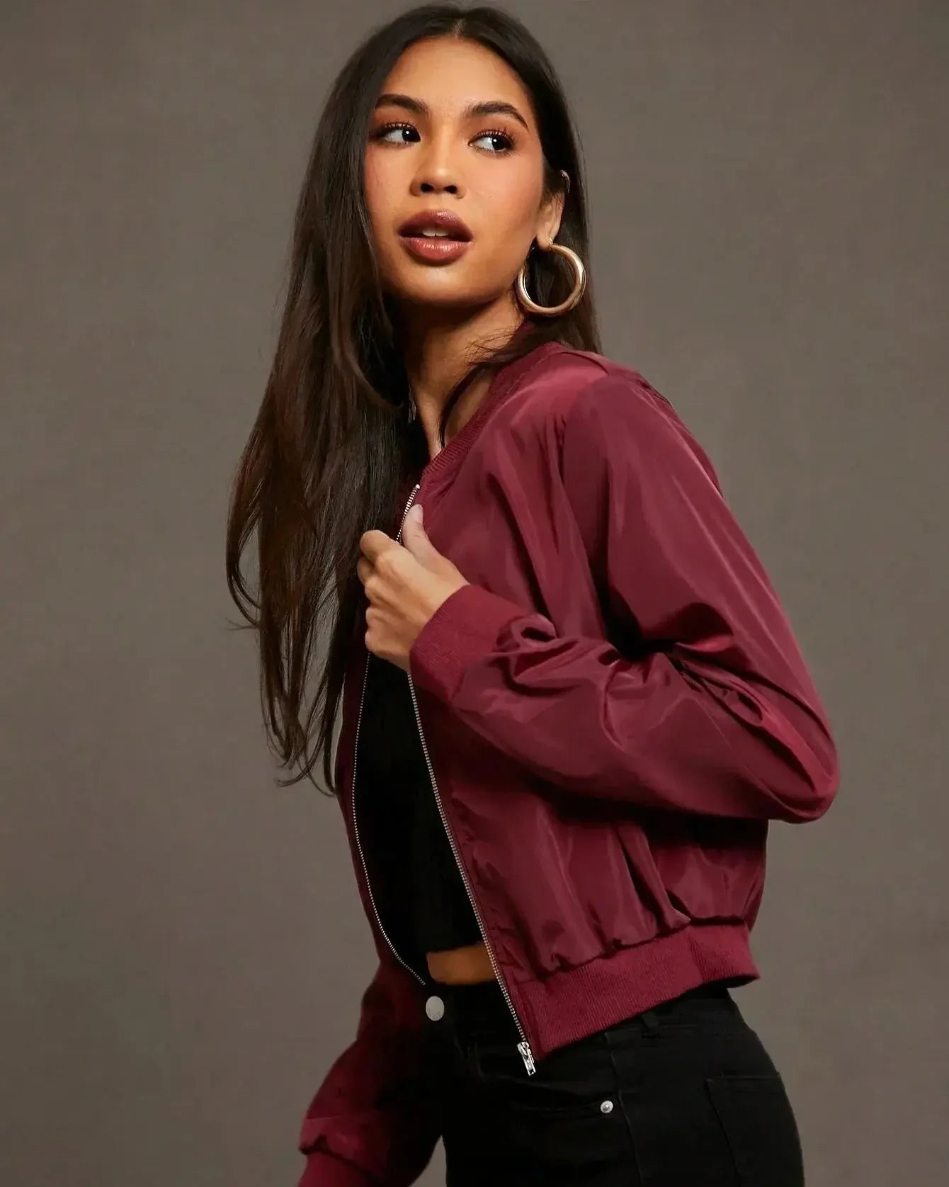 Gianna bomber kabát nabízí uvolněný a elegantní vzhled s krátkým, strukturovaným siluetem. Dlouhý zip, elastické manžety a baseballový límec vytvářejí sportovní profil, zatímco lehký materiál z něj činí ideální kousek pro přechodné období. Spojte ho s džíny, tepláky nebo sukní pro vytvoření uvolněného každodenního stylu.