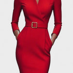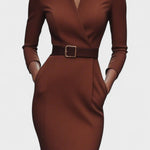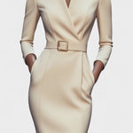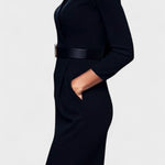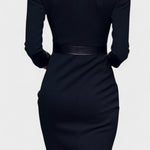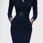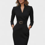 • Styl: Midi šaty s Mao límcem a páskem