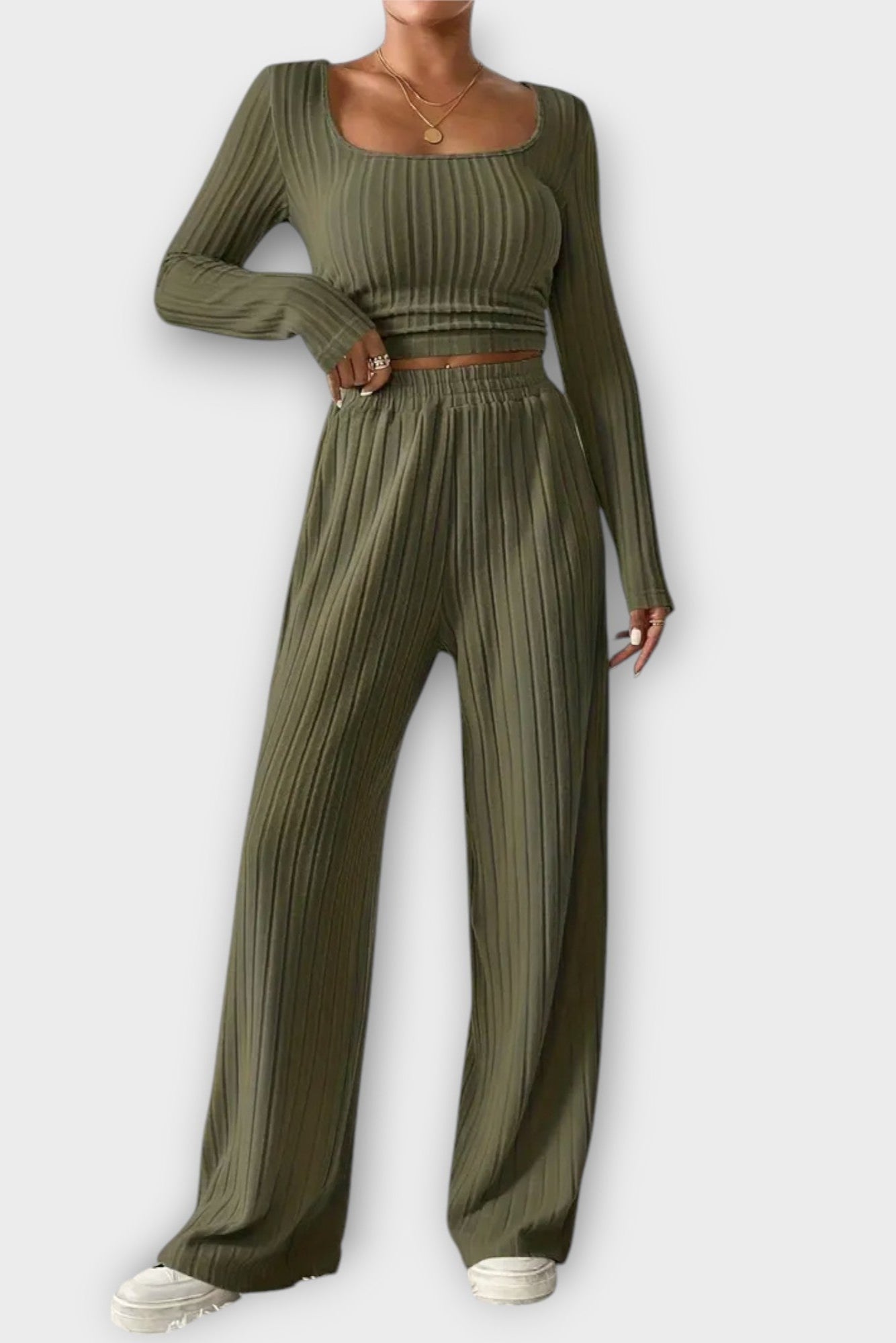 Dámská kombinace “Ana” z naší podzimní/zimní kolekce spojuje nadčasovou eleganci s moderním a uvolněným vzhledem. Tento dvoudílný komplet je nezbytný pro ženy, které si cení pohodlí a rafinovanosti.