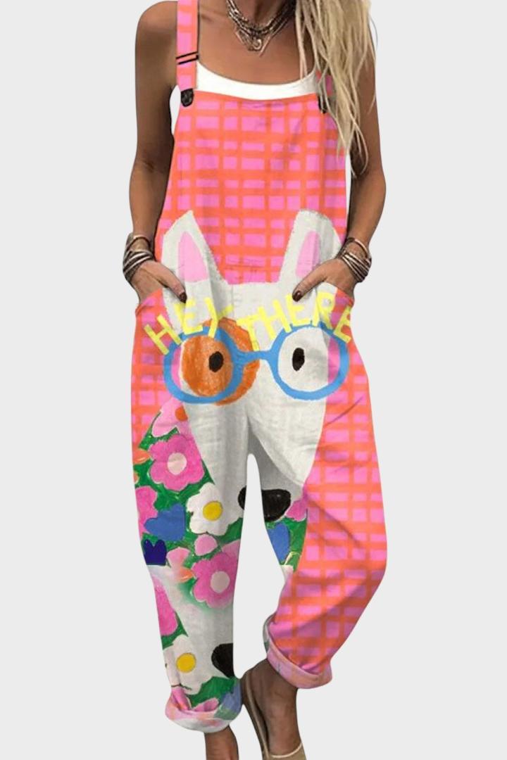 Tento uvolněný overal spojuje pohodlí a jedinečný design v oděvu, který si zamilujete nosit každý den. Volný střih, praktické kapsy a hravé detaily z něj činí dokonalou volbu na procházky, výlety nebo relaxační chvíle doma.